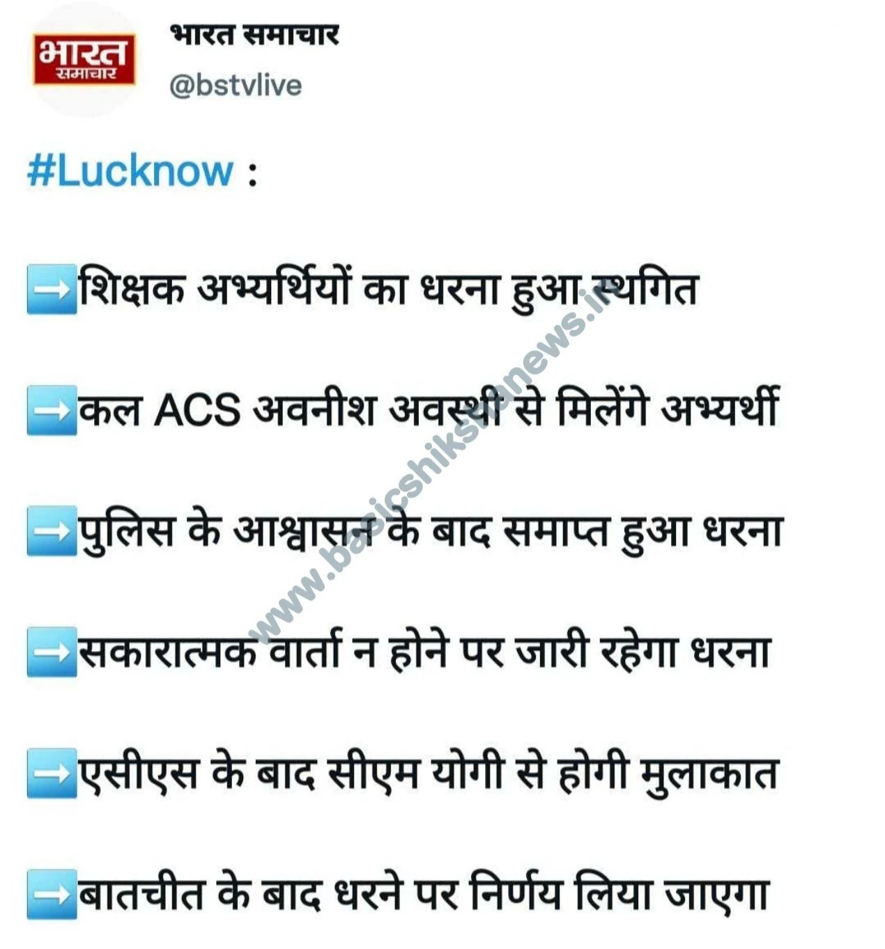 शिक्षक अभ्यर्थियों का धरना हुआ स्थगित, कल ACS अवनीश अवस्थी से मिलेंगे अभ्यर्थी, पुलिस के आश्वासन के बाद समाप्त हुआ धरना