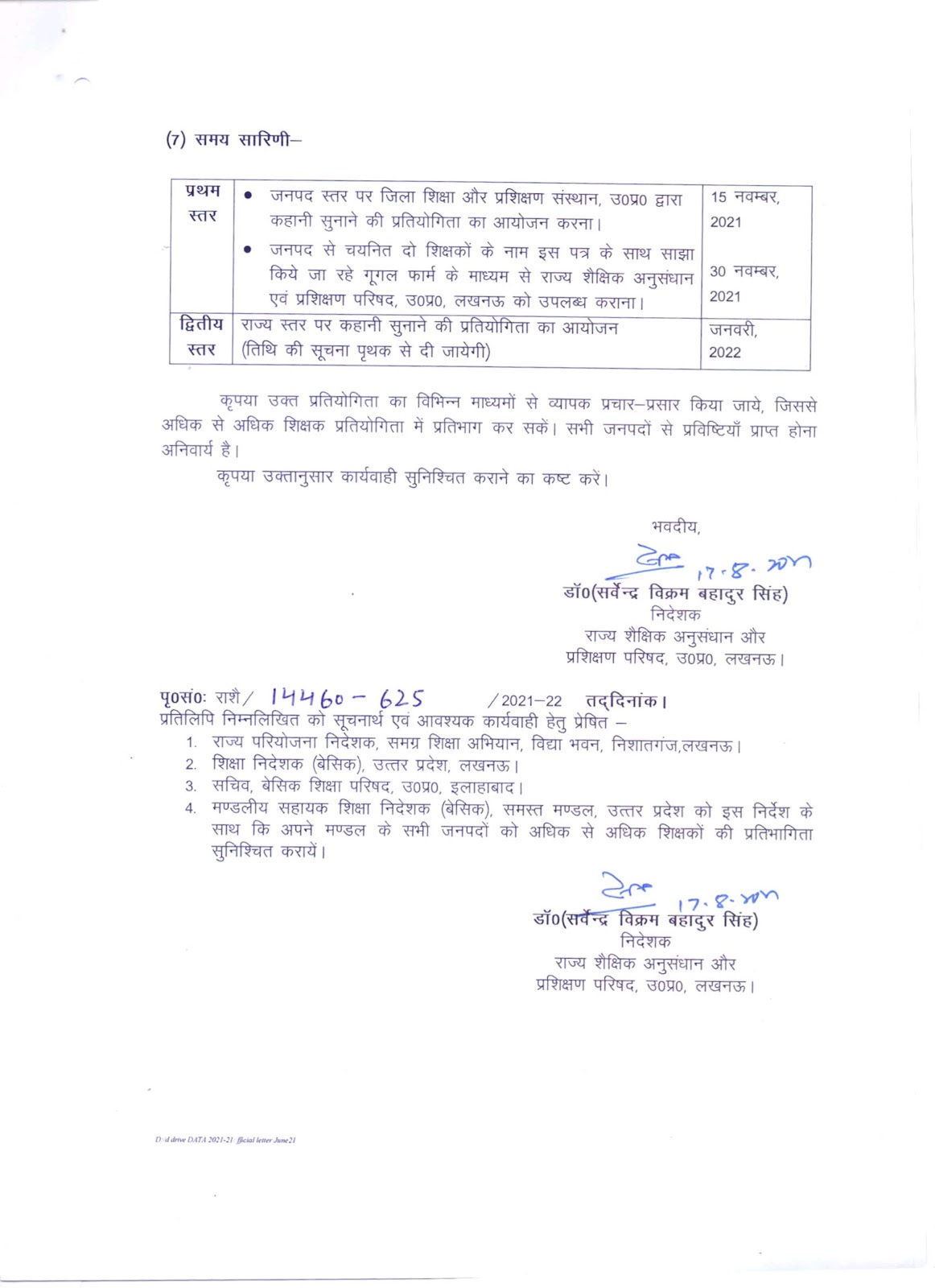 पंचम राज्य स्तरीय कहानी सुनाने की प्रतियोगिता के सम्बन्ध में।