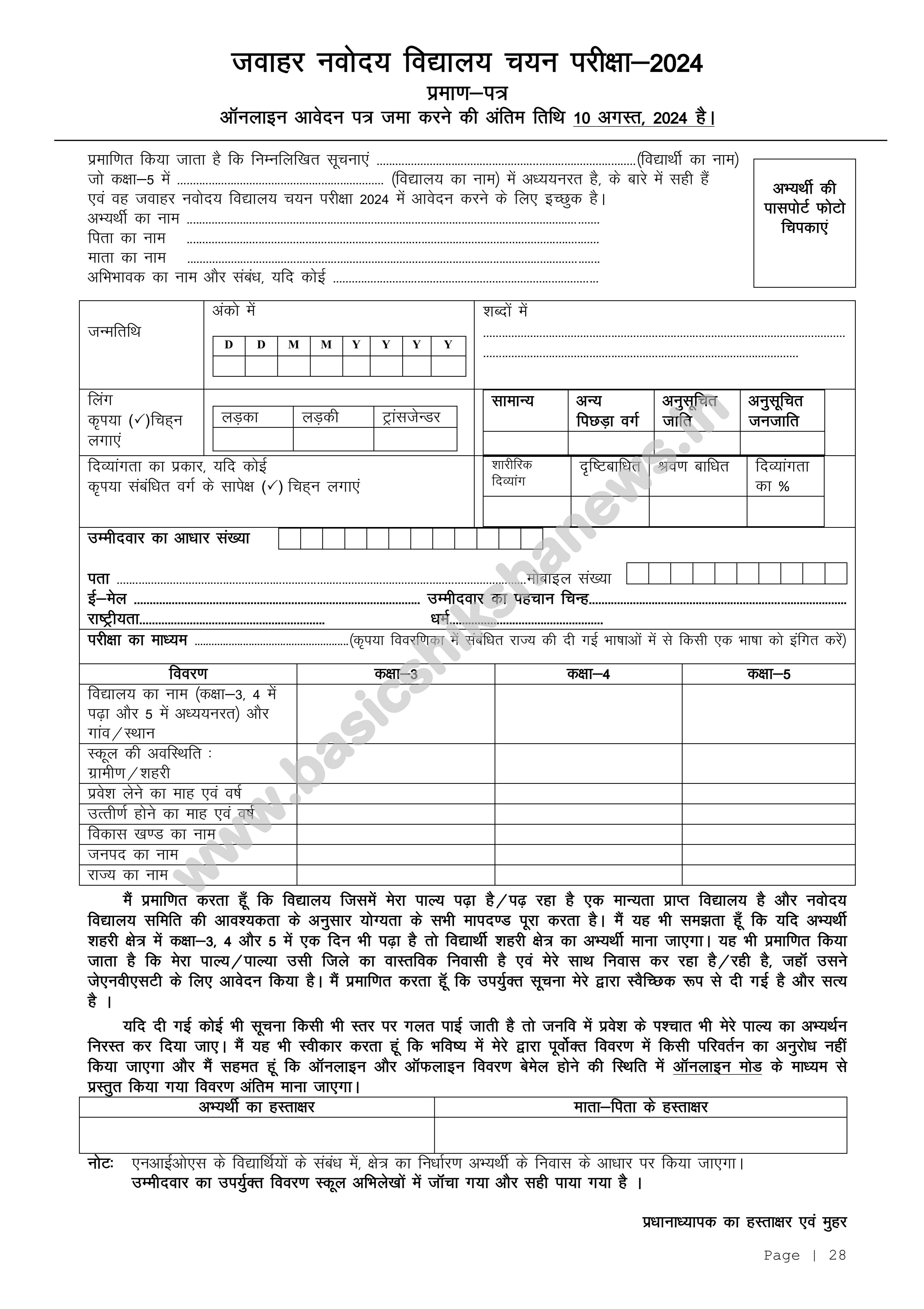 जवाहर नवोदय विद्यालय चयन परीक्षा- 2024 का फॉर्म डाउनलोड करने के लिए यहां क्लिक करें।