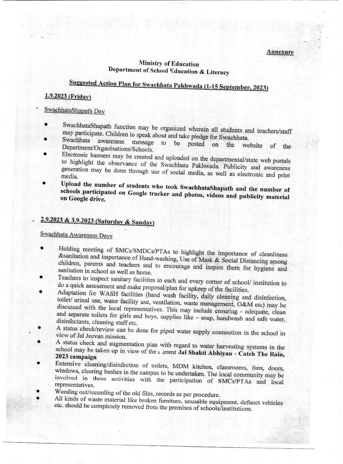 समस्त विद्यालयों/शिक्षण संस्थानों में “स्वच्छता पखवाड़ा मनाये जाने के सम्बन्ध में आदेश हुआ जारी, देखें
