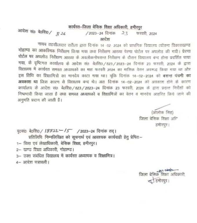 बेसिक का दर्द बया करता यह आदेश,,।।।