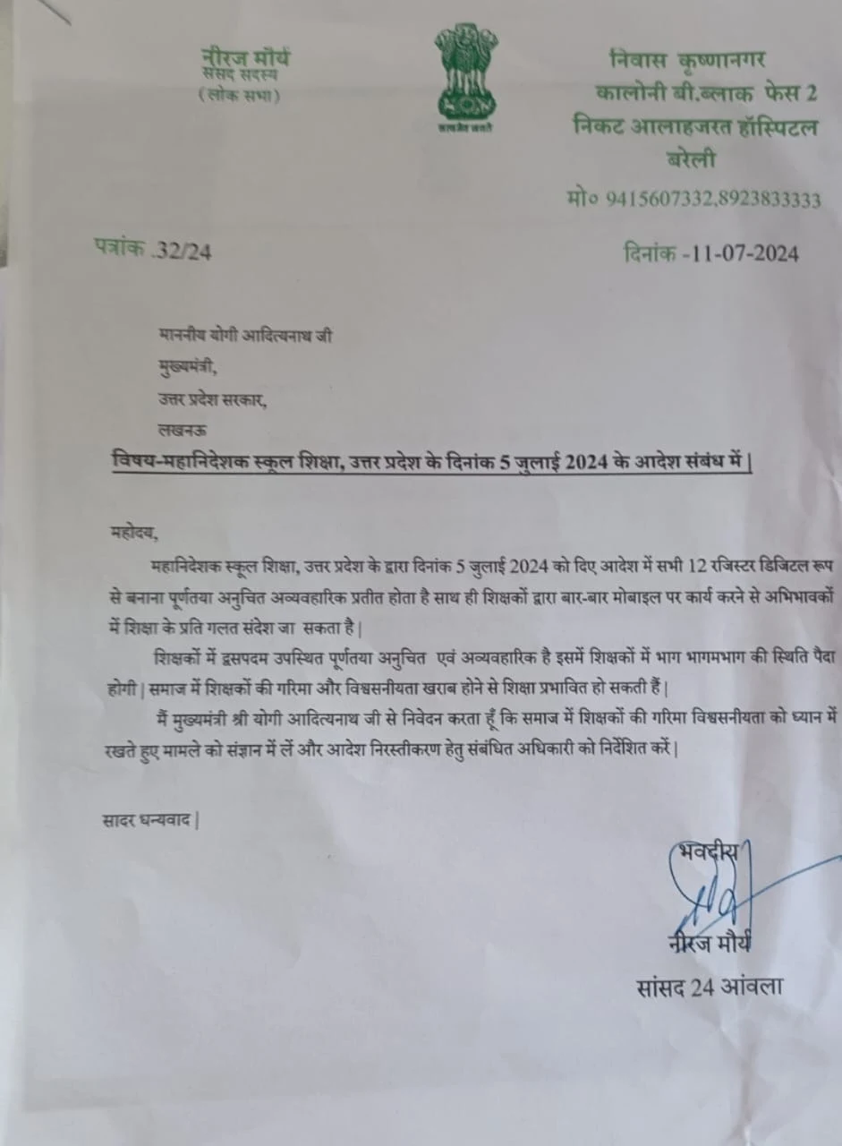 विषय- महानिदेशक स्कूल शिक्षा, उत्तर प्रदेश के दिनांक 5 जुलाई 2024 के आदेश संबंध में।